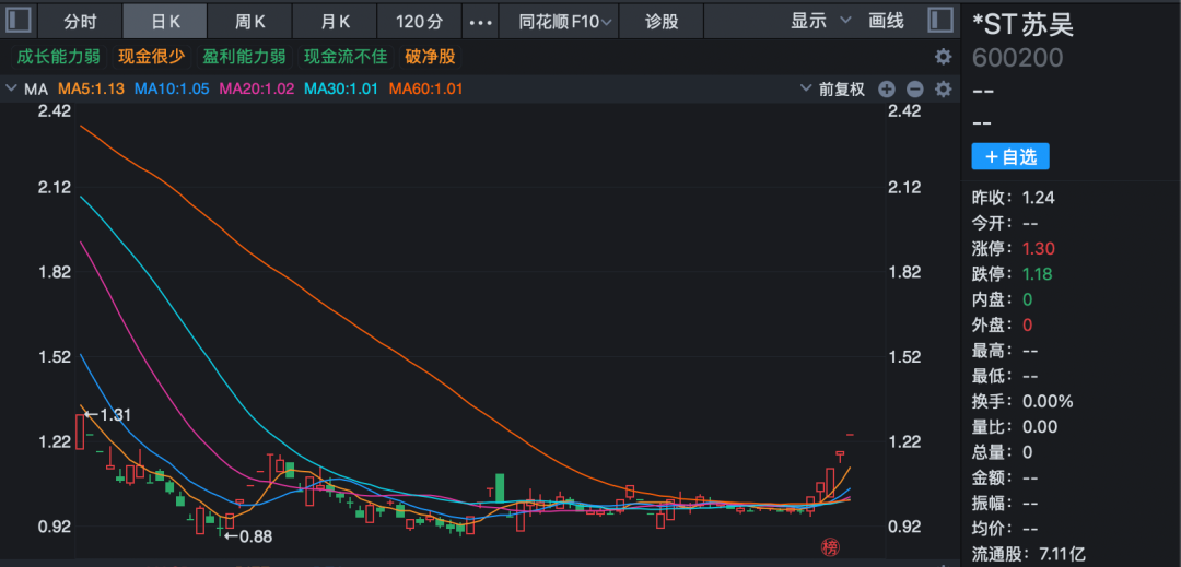 *ST苏吴(维权)(600200)迎来退市倒计时。
